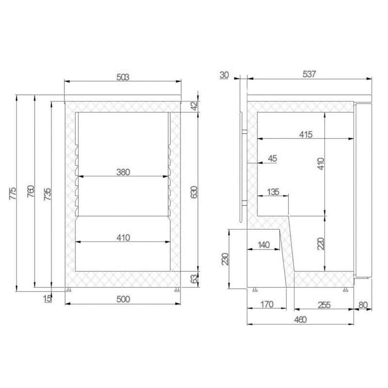 Dimensions 503 x 567 x 775 mm (WxDxH)